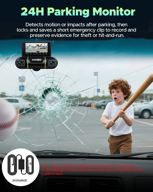 4 Channel Dash Cam Front and Rear inside with Hardwire Kit for 24H Security Parking Monitor, 1080P FHD 360 Degree View 5G Wifi Dash Camera, IR Night Vision Dashcam, G-Sensor, Free 128GB Card